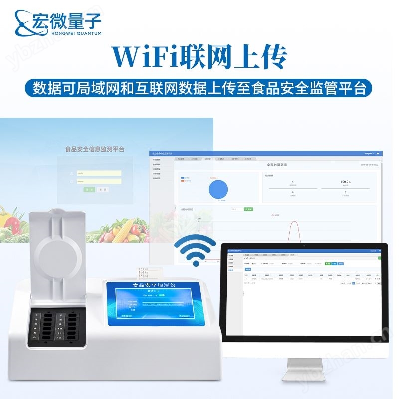 8、仪器带有监管平台。数据可局域网和互联网数据上传,检测结果直接传至食品安全监管平台。进行区域食品安全监管及大数据分析处理,检测区域食品安全长短期动态,达到食品安全问题预估、预警