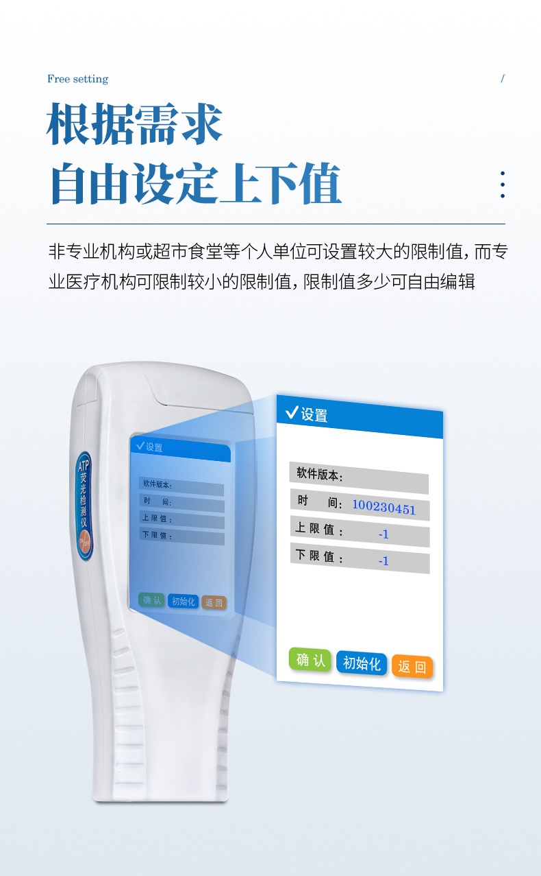 水质细菌检测仪实用性——可根据环境检测需求设定上下限值,做到数据快速评估预警,表面洁净度快速筛查。